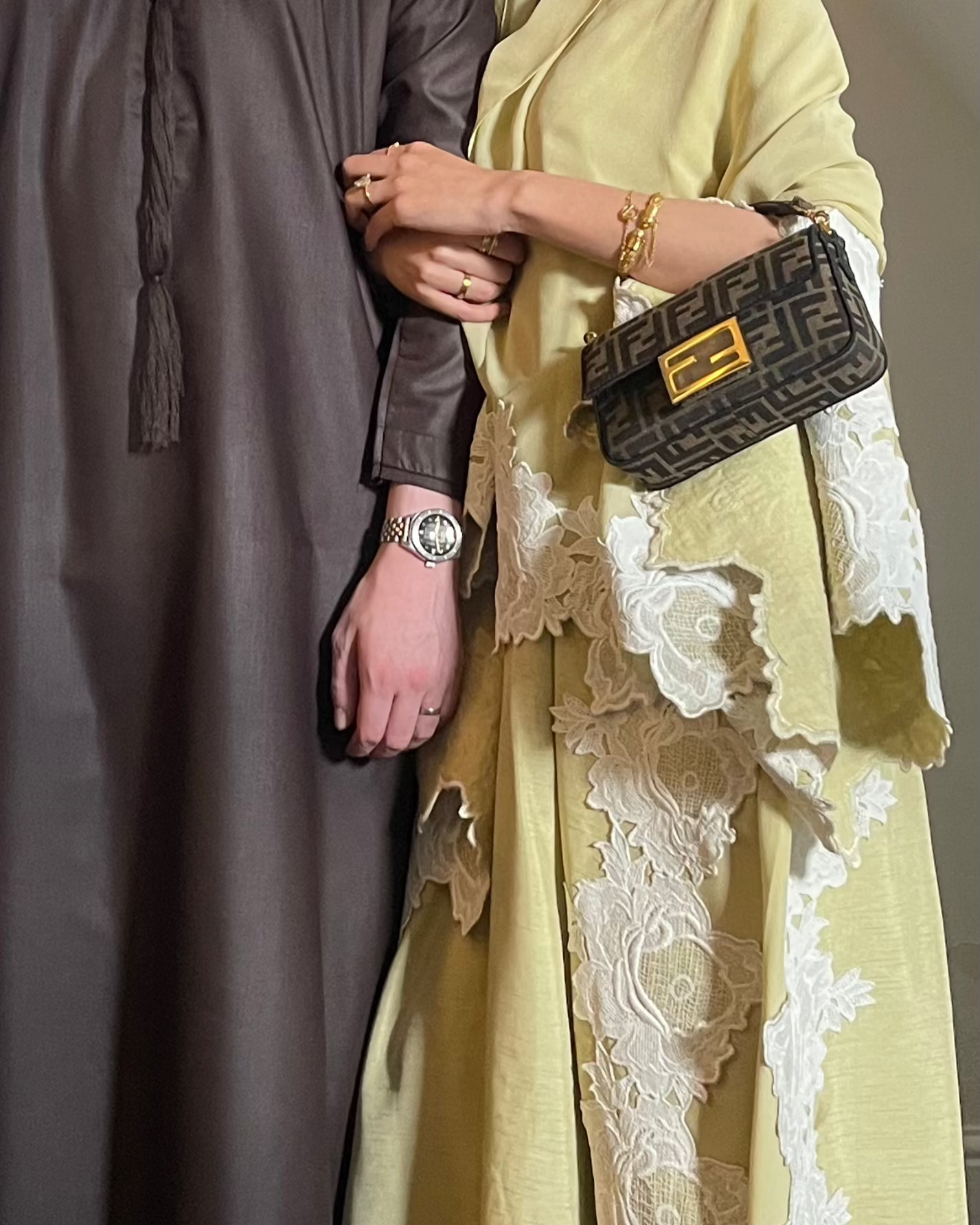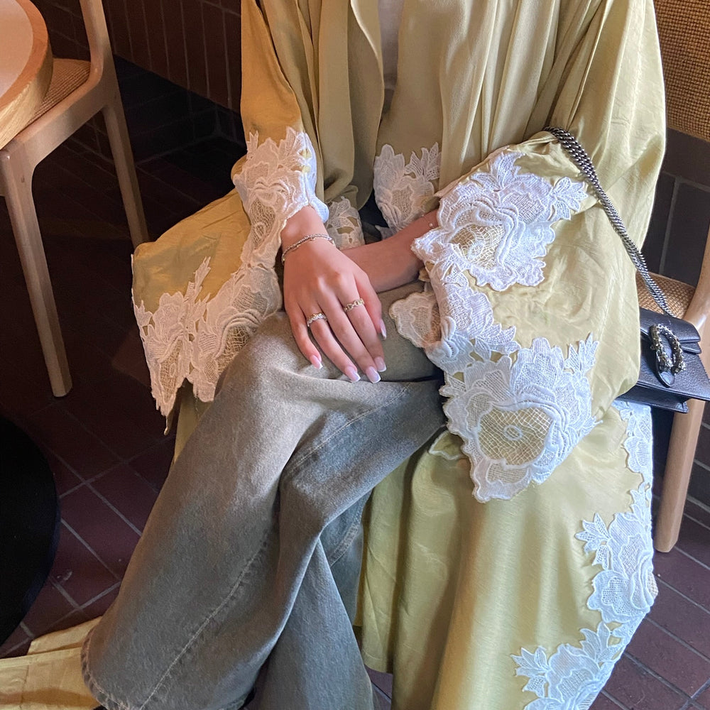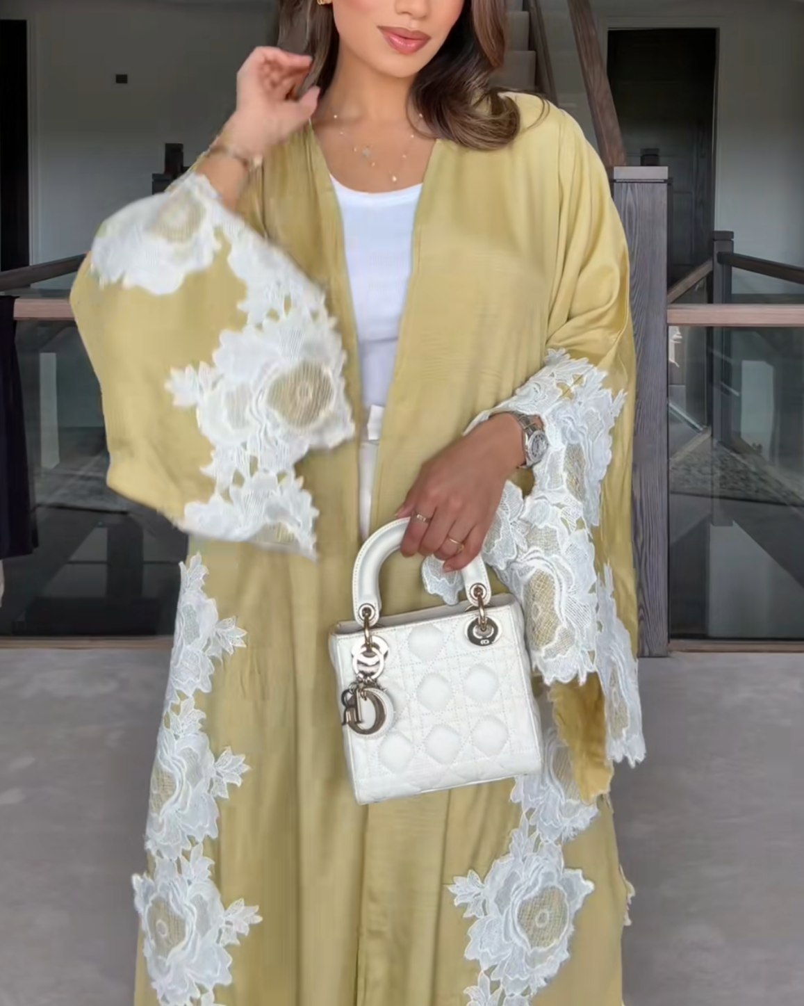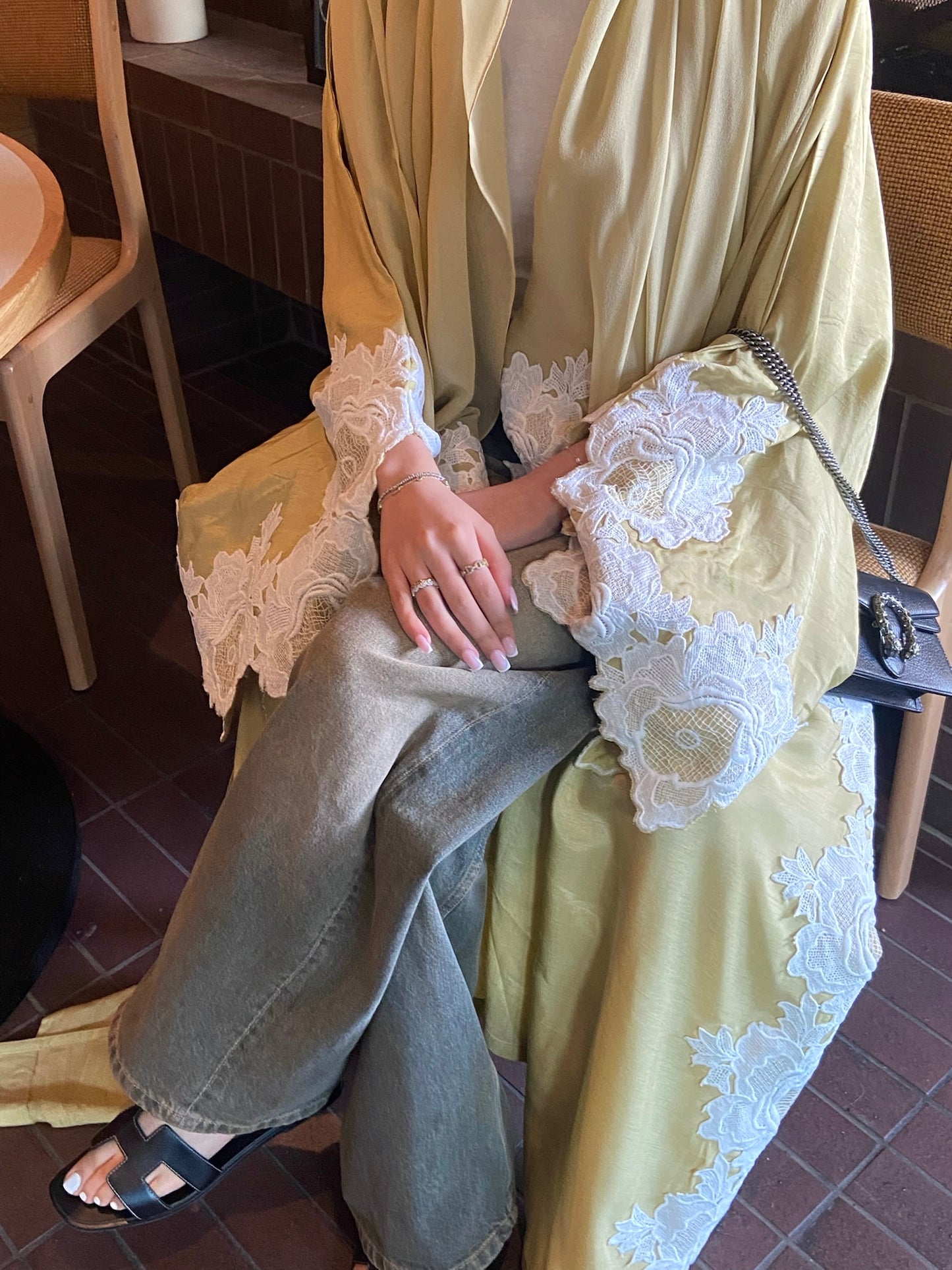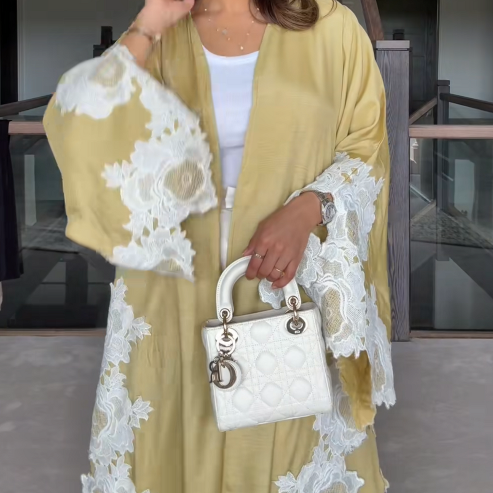This elegant set features a beautifully designed dress and a matching scarf, perfect for any special occasion. The dress showcases bell sleeves with slits, floral cutwork for a light and effortless look, and a chiffon-lined slit for added sophistication. The custom-dyed scarf, with delicate cutwork, can be styled in various ways to complement your personal style.